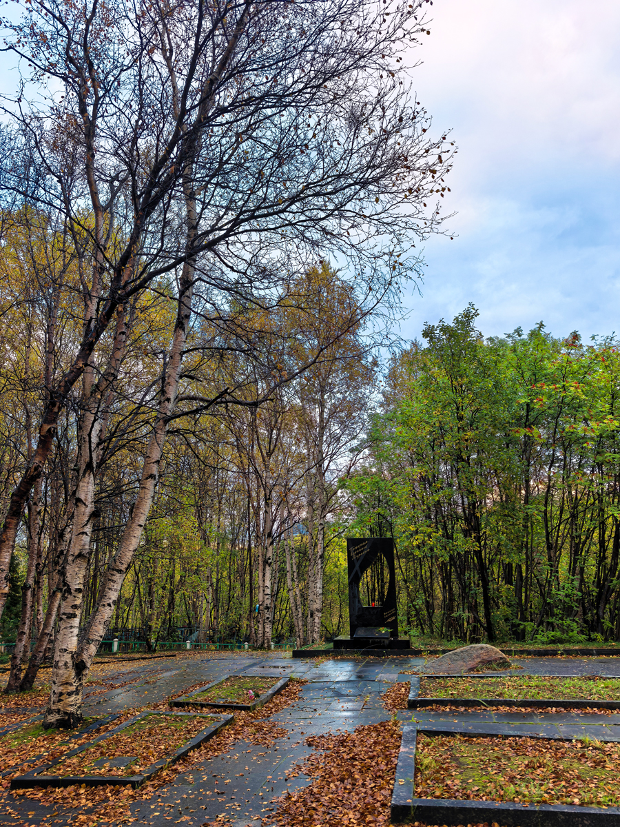 На Воинском кладбище Мурманска в конце главной аллеи есть захоронение пожарных, погибших в годы Великой Отечественной войны, когда Мурманск подвергался жестоким немецким бомбардировкам.