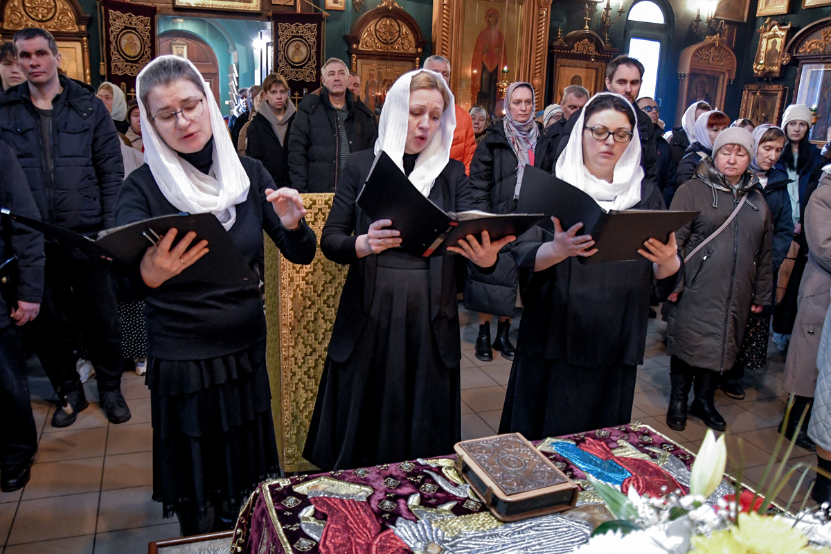 После прочтения апостольского послания трио клиросного хора в составе матушек: Екатерины Бычковой, Иулии Емельяновой и Анны Слащенко исполнило Аллилуарий Великой Субботы.