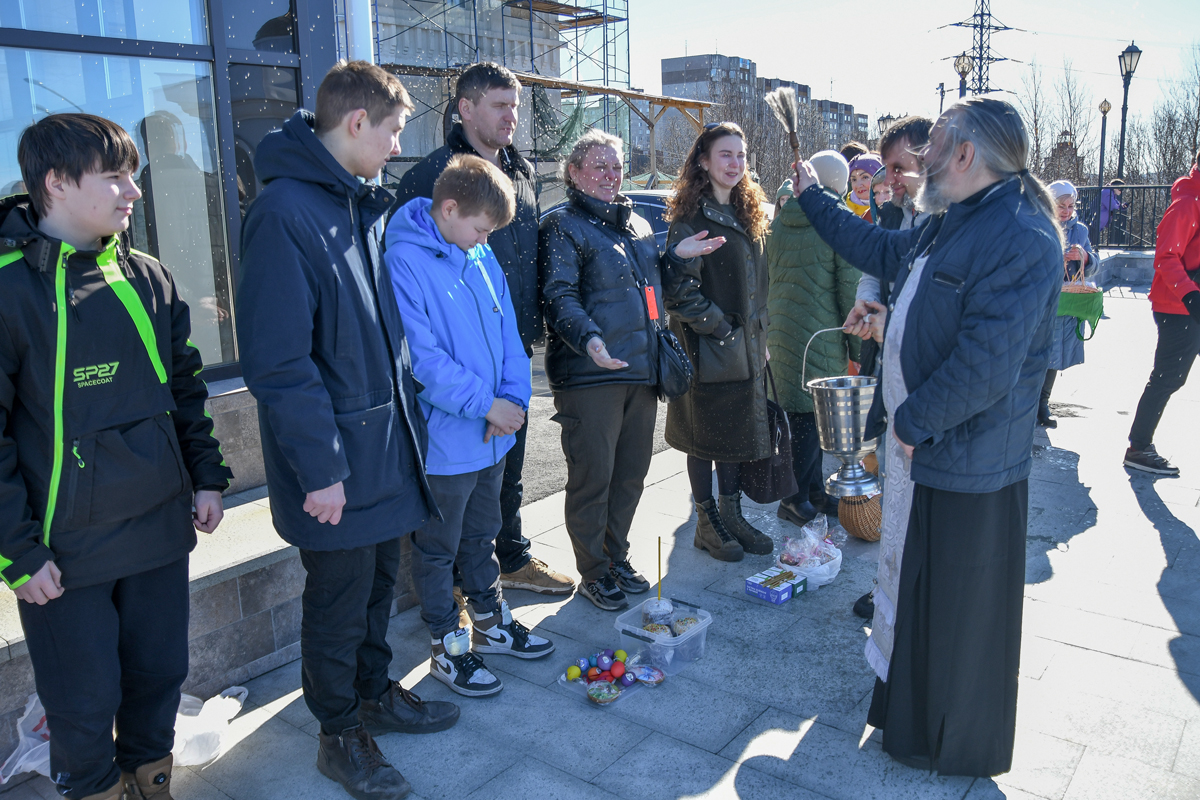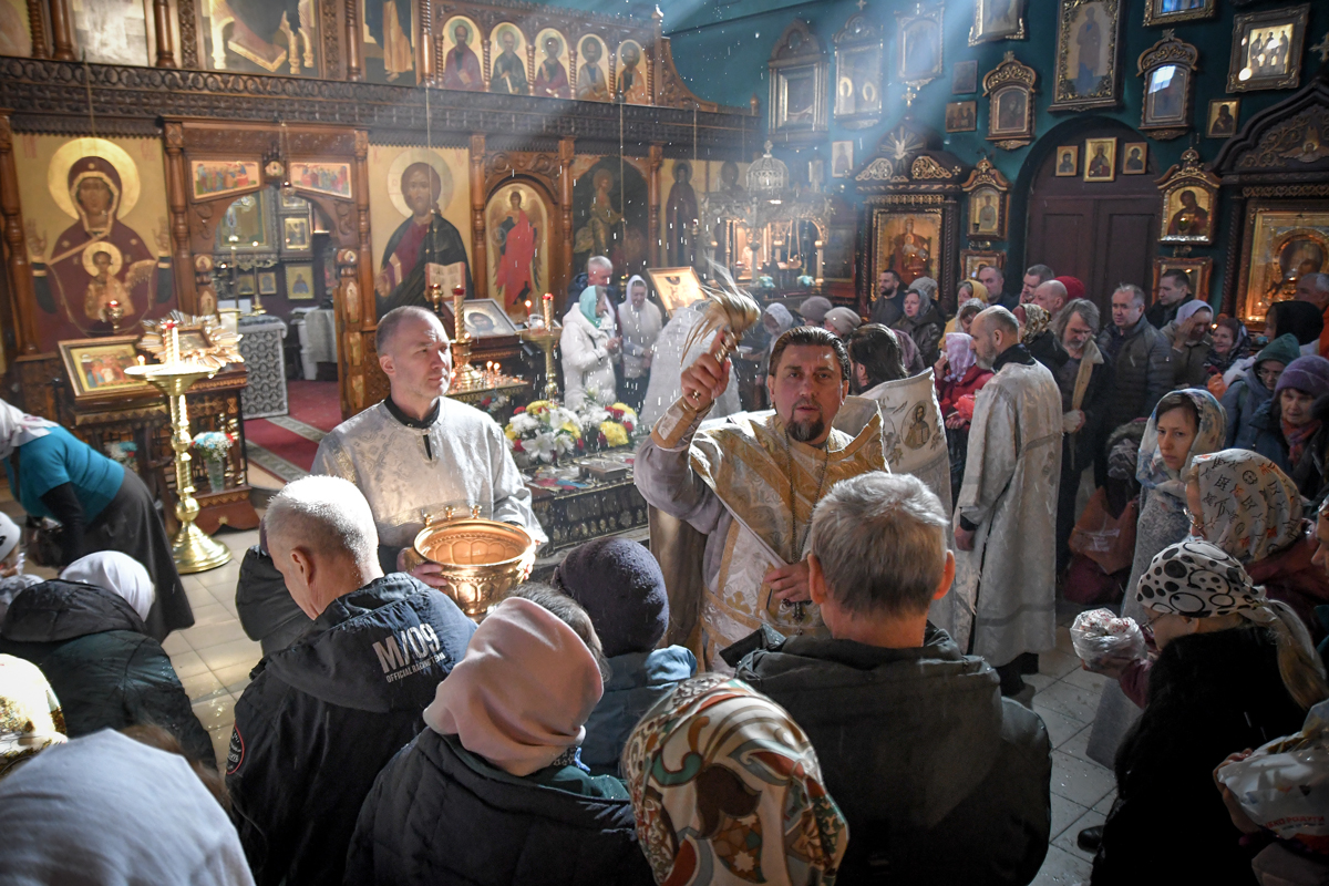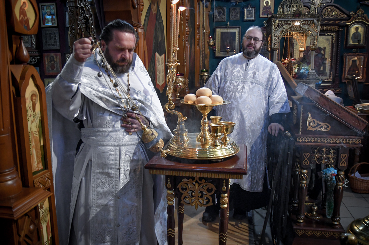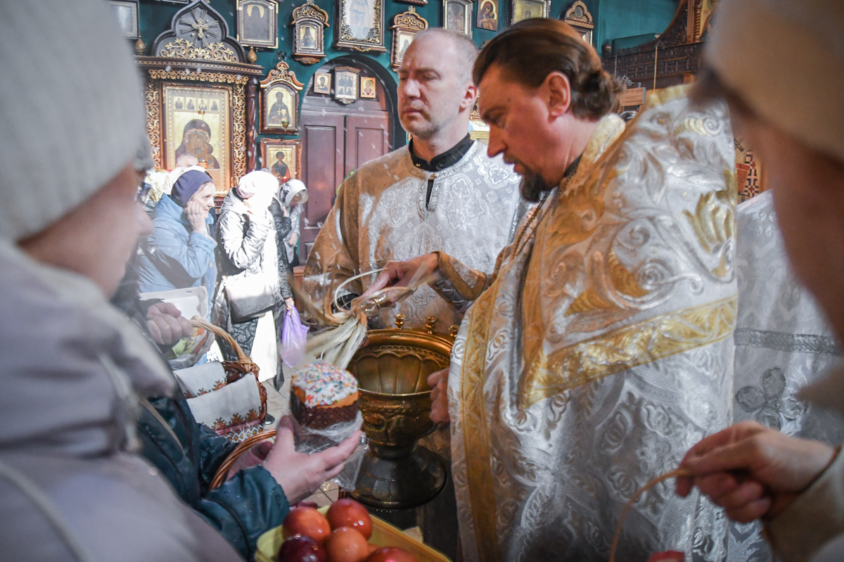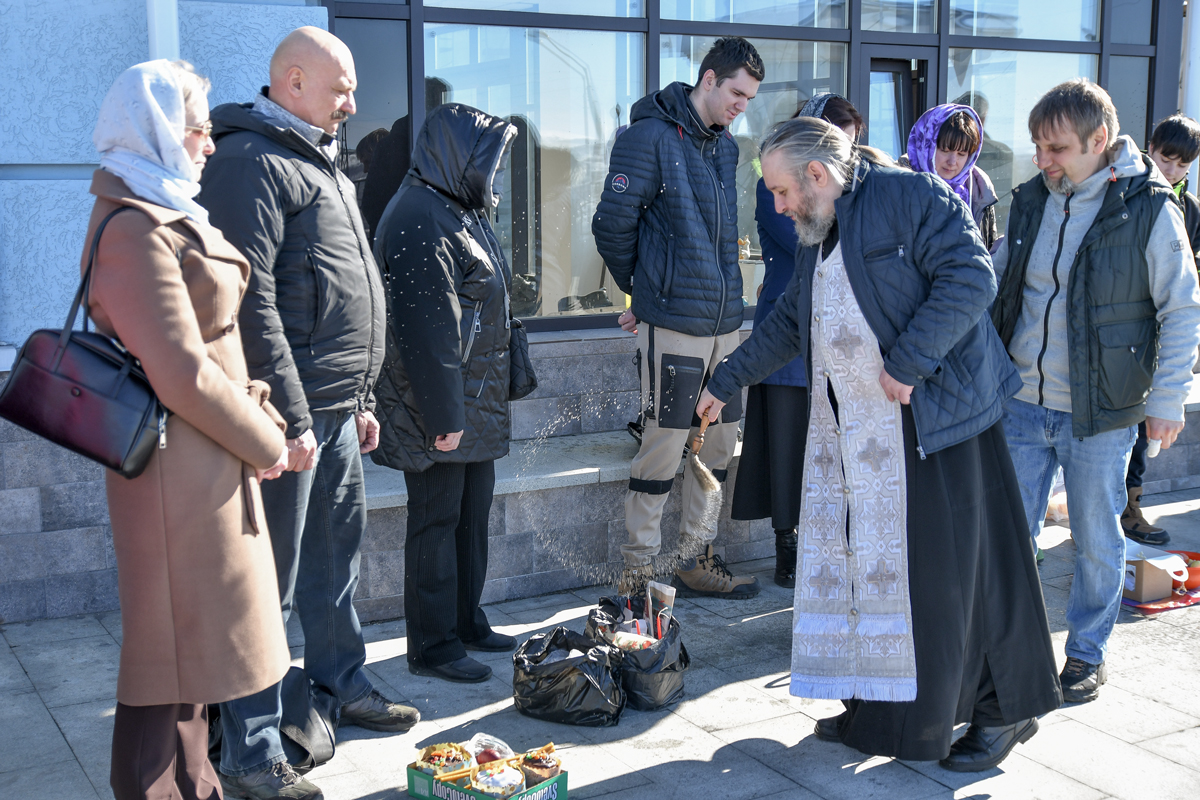 В конце водосвятного молебна прочитаны молитва на благословение брашна (яиц и прочей скоромной пищи) и освящена пасхальная снедь.