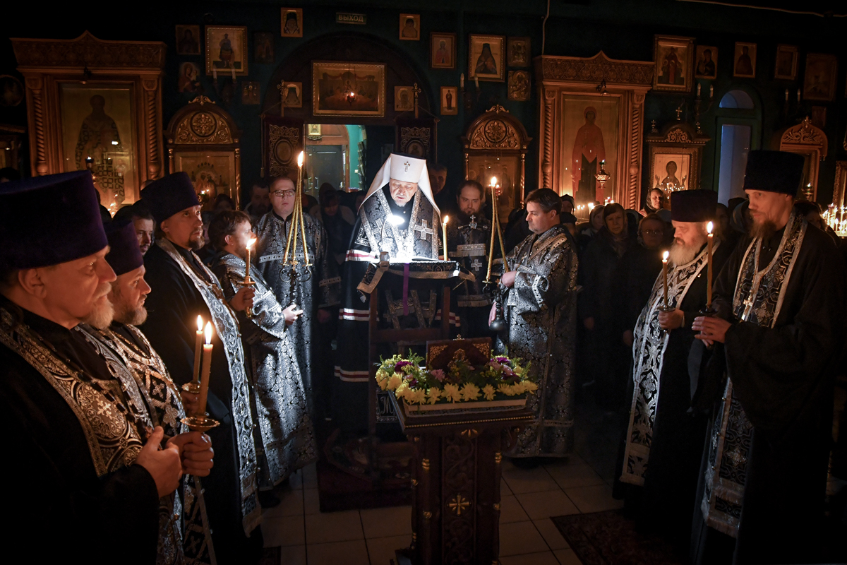 На богослужение был принесён ковчег со святыми мощами автора канона – критского пастыря Андрея.