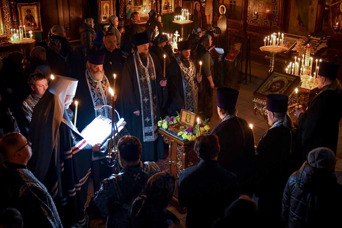 Вечером 24 февраля 2026 года, во вторник первой седмицы Великого поста, в храме Спаса на водах великое повечерие с чтением Великого покаянного канона преподобного Андрея Критского совершил митрополит Мурманский и Мончегорский Митрофан.